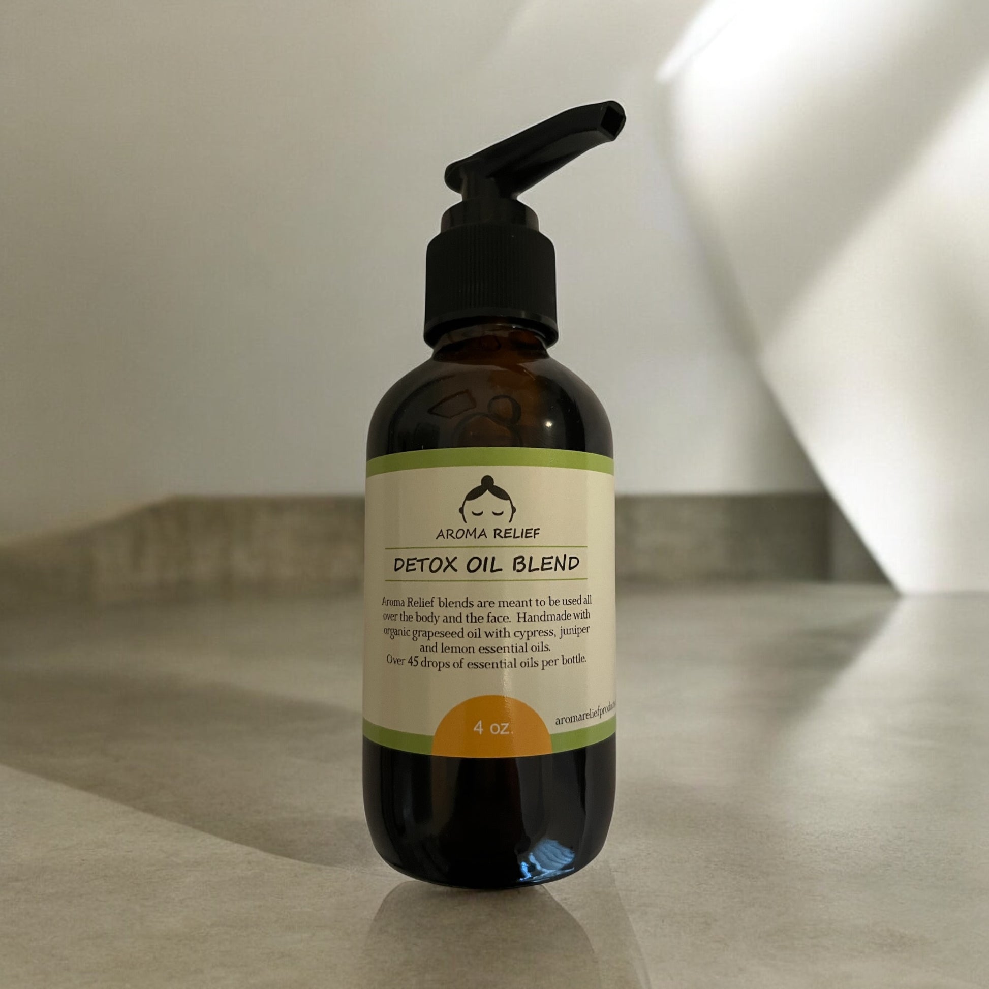 Aroma Relief blends are meant to be used all over the body and the face. Handmade with organic grape seed oil with cypress, juniper and lemon essential oils. Over 45 drops of essential oils per bottle.
